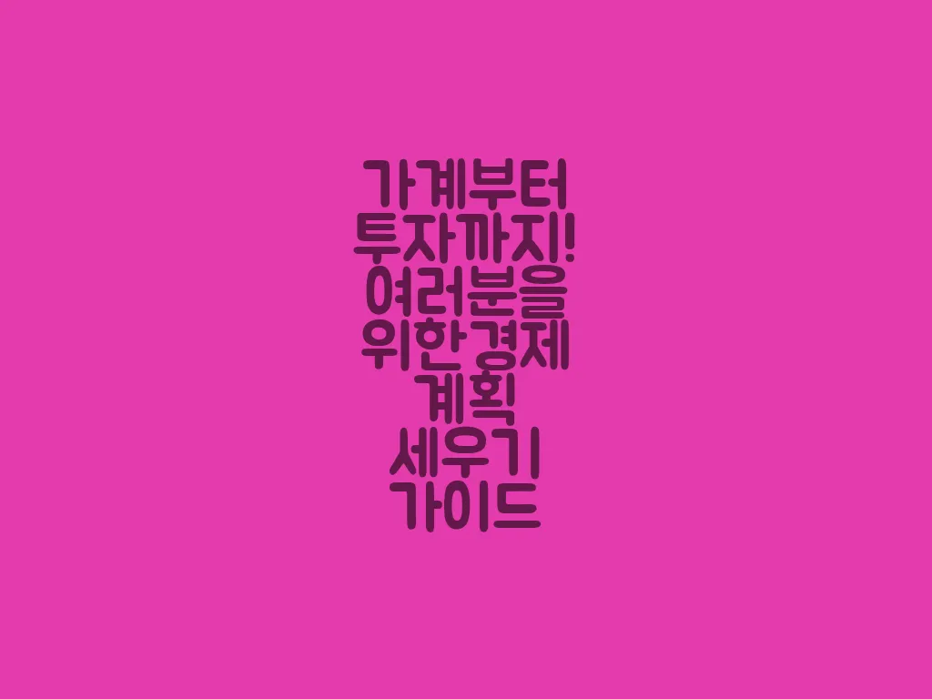 이 가이드는 여러분이 경제적인 안정과 재무적인 목표를 달성하기 위한 출발점이 될 것입니다. 가계부 작성, 재무 상태 분석, 경제적 목표 설정, 그리고 효과적인 투자 전략에 대한 이해를 바탕으로 여러분의 경제 생활을 관리해 보세요. 안정적인 재무 상태를 유지하고 원하는 경제적인 목표를 달성하기 위해 계속해서 자신의 경제 계획을 평가하고 개선해 나가는 것이 중요합니다.
