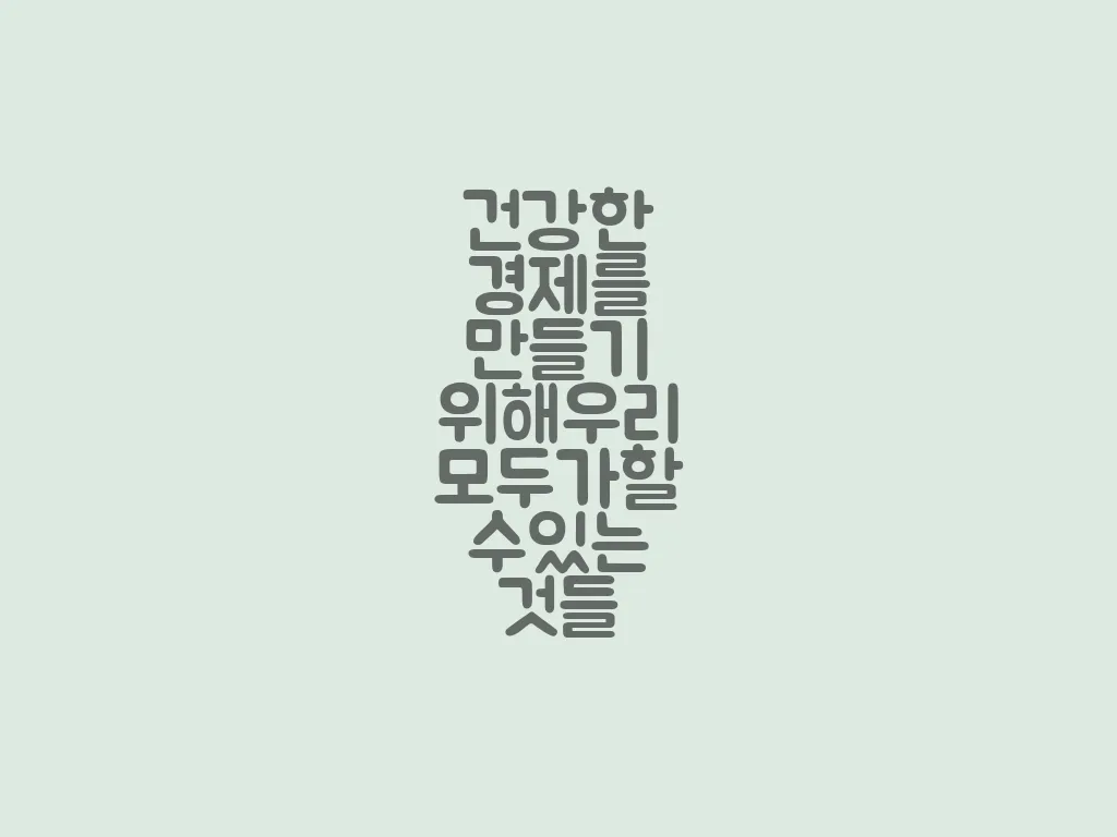 지속 가능한 경제를 만들기 위해서는 개인의 작은 노력이 모여야 합니다. 이러한 노력은 단순히 경제적 이익을 넘어, 사회적, 환경적 가치까지 고려하는 방향으로 나아가야 합니다. 건강한 경제는 우리 모두의 지속적인 관심과 참여로 만들어질 수 있습니다.