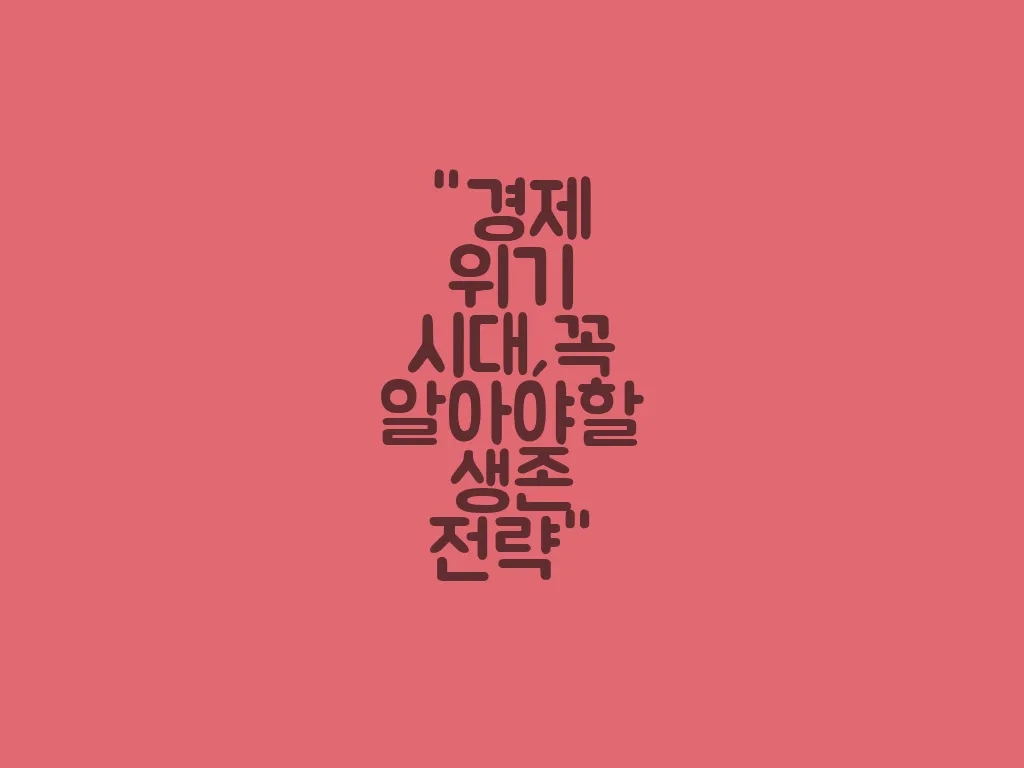 경제 위기 시대에는 효과적인 생존 전략이 필수입니다. 금융 상식, 소득 다각화, 비상금 구축, 시장 분석 및 트렌드 파악, 개인의 경제교육과 전문가 상담은 우리가 현재와 미래의 경제적 안정을 위해 꼭 알아야 할 요소들입니다. 위기는 언제든 찾아올 수 있지만, 준비된 자가 승리할 수 있는 이유입니다. 여러분도 함께 준비하여 경제 위기 시대를 극복해 나갈 수 있기를 바랍니다.