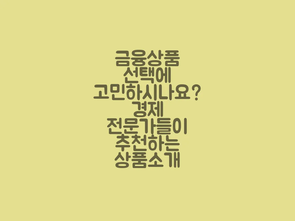 금융상품을 선택할 때 많은 사람들이 어려움을 겪습니다. 이 글에서는 경제 전문가들이 추천하는 몇 가지 인기 있는 금융상품을 소개하고자 합니다. 이 글을 통해 금융상품 선택에 도움을 받으시길 바랍니다.