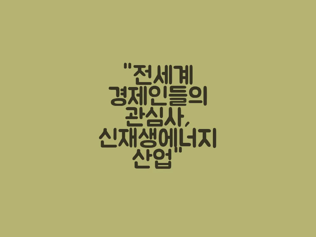오늘은 전세계 경제인들의 관심사인 신재생에너지 산업에 대해 알아보려고 합니다. 지속 가능한 경제 개발과 환경 보호의 필요성이 점점 더 중요해지면서, 신재생에너지 산업은 세계 각국에서 큰 관심과 투자를 받고 있습니다.