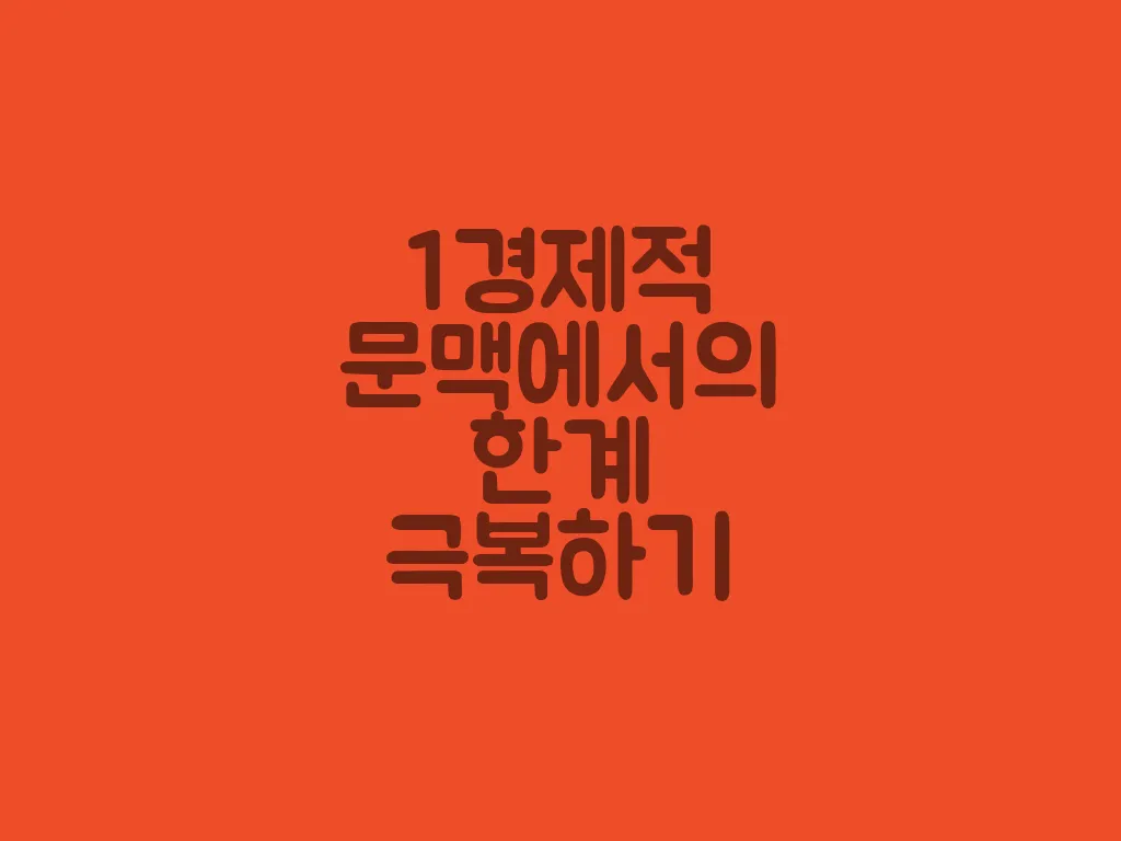 1경제적 문맥에서의 한계 극복은 돈과 경제에 대한 효율적인 관리와 지속적인 노력을 필요로 합니다. 예산 관리, 추가 수입 창출, 지식과 스킬 향상, 신중한 투자, 그리고 경제적인 협력은 한계 극복에 도움이 되는 전략입니다. 이러한 전략들을 적극적으로 실천하면 한계를 극복하고 더 나은 경제적 안정과 성공을 이룰 수 있을 것입니다. 우리는 현대 사회에서 경제적인 한계를 극복하는데 도움이 되는 다양한 방법을 발견하고 적용하여 더 나은 미래를 만들어 나갈 수 있을 것입니다.