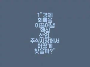 이번 블로그 포스팅에서는 현재의 경제 회복을 이끌어낼 핵심 산업을 알아보고, 주식시장에서 이러한 산업을 어떻게 찾을 수 있는지에 대해 알아보겠습니다. 1. 경제 회복을 이끌어낼 핵심 산업의…