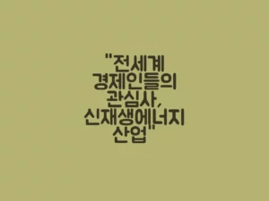 오늘은 전세계 경제인들의 관심사인 신재생에너지 산업에 대해 알아보려고 합니다. 지속 가능한 경제 개발과 환경 보호의 필요성이 점점 더 중요해지면서, 신재생에너지 산업은 세계 각국에서 큰 관심과…