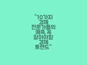 10가지 경제 전문가들의 예측, 꼭 알아야 할 경제 트렌드 경제 트렌드를 예측하는 것은 현대 사회에서 매우 중요한 일입니다. 이러한 예측은 비즈니스 전략 수립, 투자 결정…