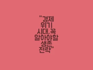 안녕하세요 여러분! 오늘은 경제 위기 시대에서 꼭 알아야 할 생존 전략에 대해 이야기하겠습니다. 현재 경제 상황은 어렵고 불안정합니다. 어디서부터 시작해야 할지 막막할 수도 있지만, 우리…