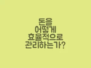 돈은 우리 생활에서 중요한 역할을 합니다. 돈을 효율적으로 관리하는 것은 우리의 미래를 위해 필수적일 뿐만 아니라 경제적 안정을 유지하는 데에도 큰 영향을 미칩니다. 이번 포스팅에서는…