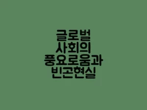 오늘은 글로벌 사회의 풍요로움과 빈곤 현실에 대해 알아보겠습니다. 글로벌화와 현대화의 진행으로 인해 세계는 더 많은 부와 발전을 경험하고 있습니다. 그러나 동시에 빈곤과 불평등 역시 존재하고…
